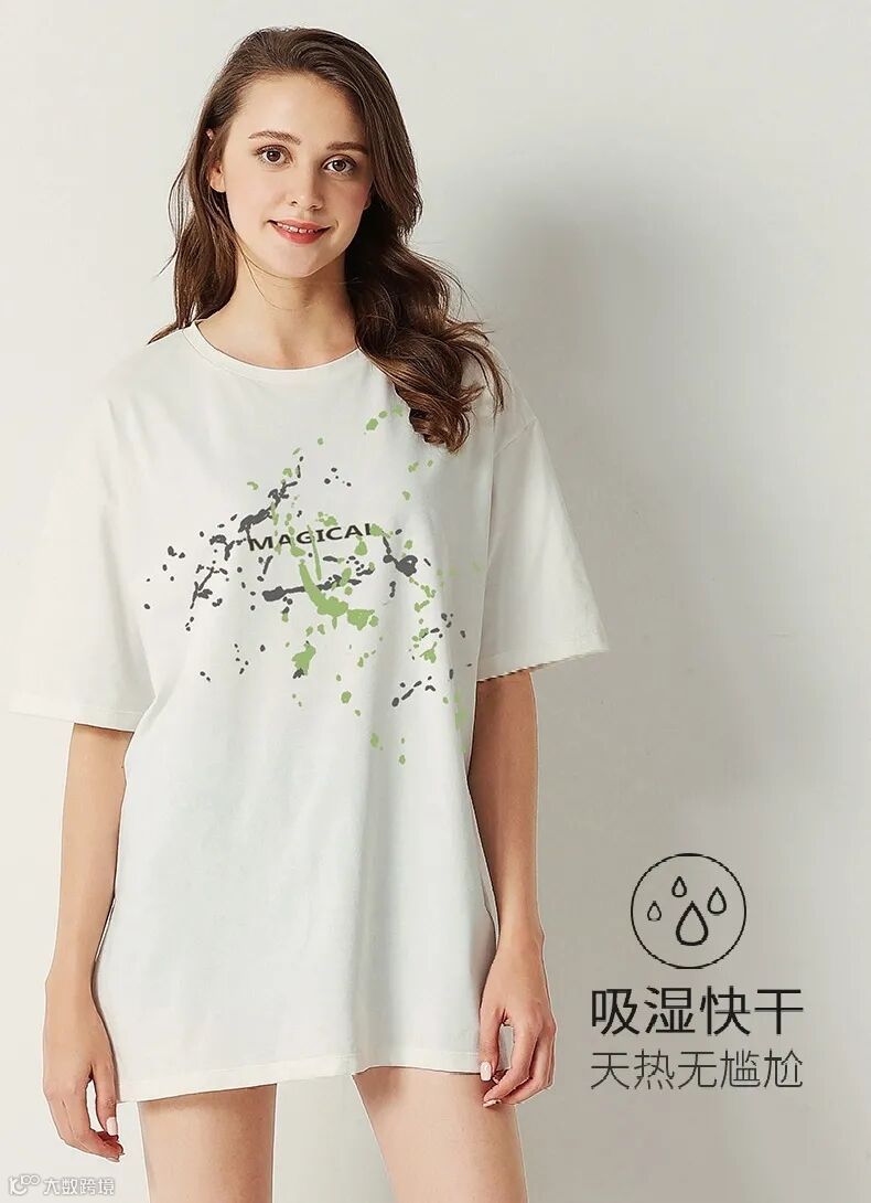 而且还不会像普通T恤,一出汗就湿哒哒的贴在身上,它触身就有凉感,夏天穿特别清爽舒适~