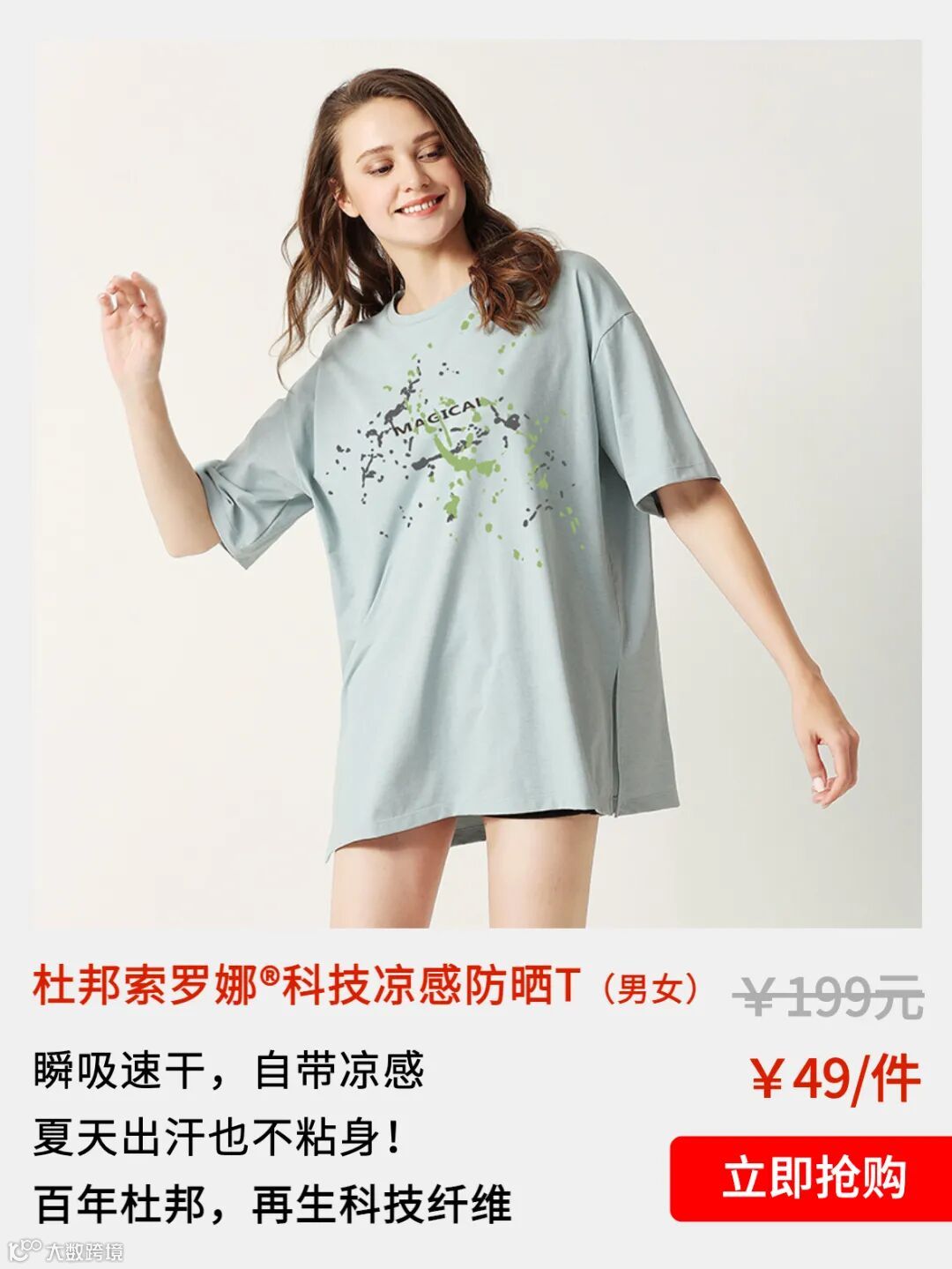 而这件杜邦打造的科技面料凉感T,百年杜邦面料,大牌质感,市场价199元!