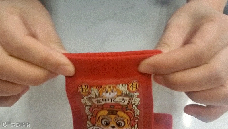袜子的图案印制在袜筒的位置,因为即使穿上鞋子,图案也能完整展现,满满的年味,可平时穿一点也不违和。