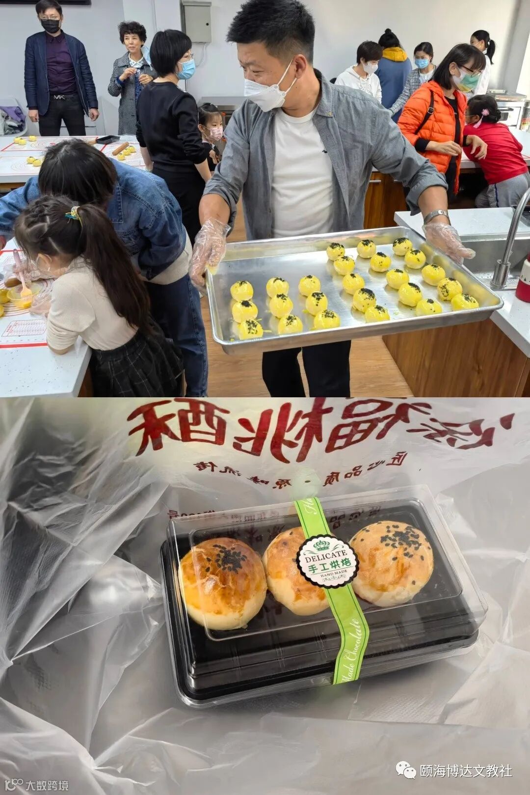 活动邀请了经验丰富的烘焙老师来为大家讲解蛋黄酥的做法。老师从如何和面、搓面团、搓馅料等环节一步步亲手示范、耐心教导。大伙也兴致盎然,跟着老师的步骤有条不紊、认认真真地制作。不一会儿,一个个漂亮的蛋黄酥就成形了,在上面加上黑色的芝麻点缀。在烤箱里经过炙烤,阵阵蛋黄酥的香味扑鼻而来。放入口中细细品尝,心中满是喜悦与成就感,大家不禁纷纷掏出手机拍照留念。