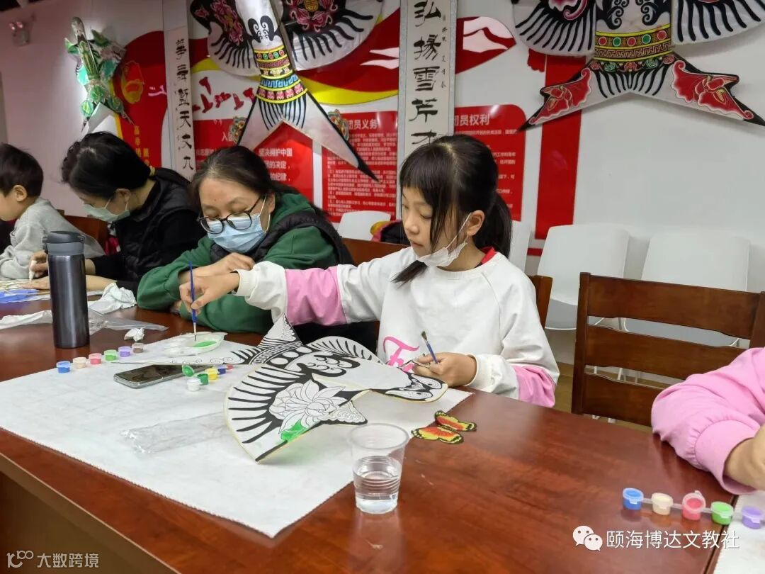 活动一开始,吴老师为大家讲解了曹氏风筝的起源,展示了漂亮精美、色彩丰富的风筝作品。看完风筝作品后,大家都被它深深吸引。接着,老师开始介绍风筝绘制流程与技巧。大家听得津津有味,也对亲手制作风筝更加迫不及待了。随后,现场工作人员为大家发放制作材料,让大家现场制作蝴蝶风筝和北京沙燕儿风筝。小朋友们心灵手巧,不一会儿就完成了风筝的制作。