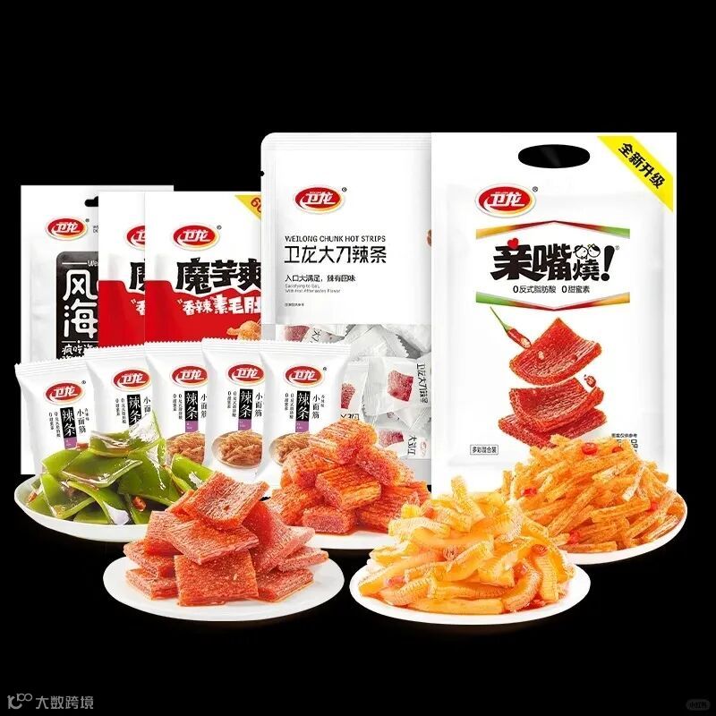 卫龙的零食,简直就是味蕾的小炸弹,一吃就炸开了花!大面筋、小面筋嚼起来Q弹有力,辣条肉香得让人停不下来,亲嘴烧甜辣交织,风吃海带清新解腻,魔芋爽则是滑溜溜的辣味小精灵。