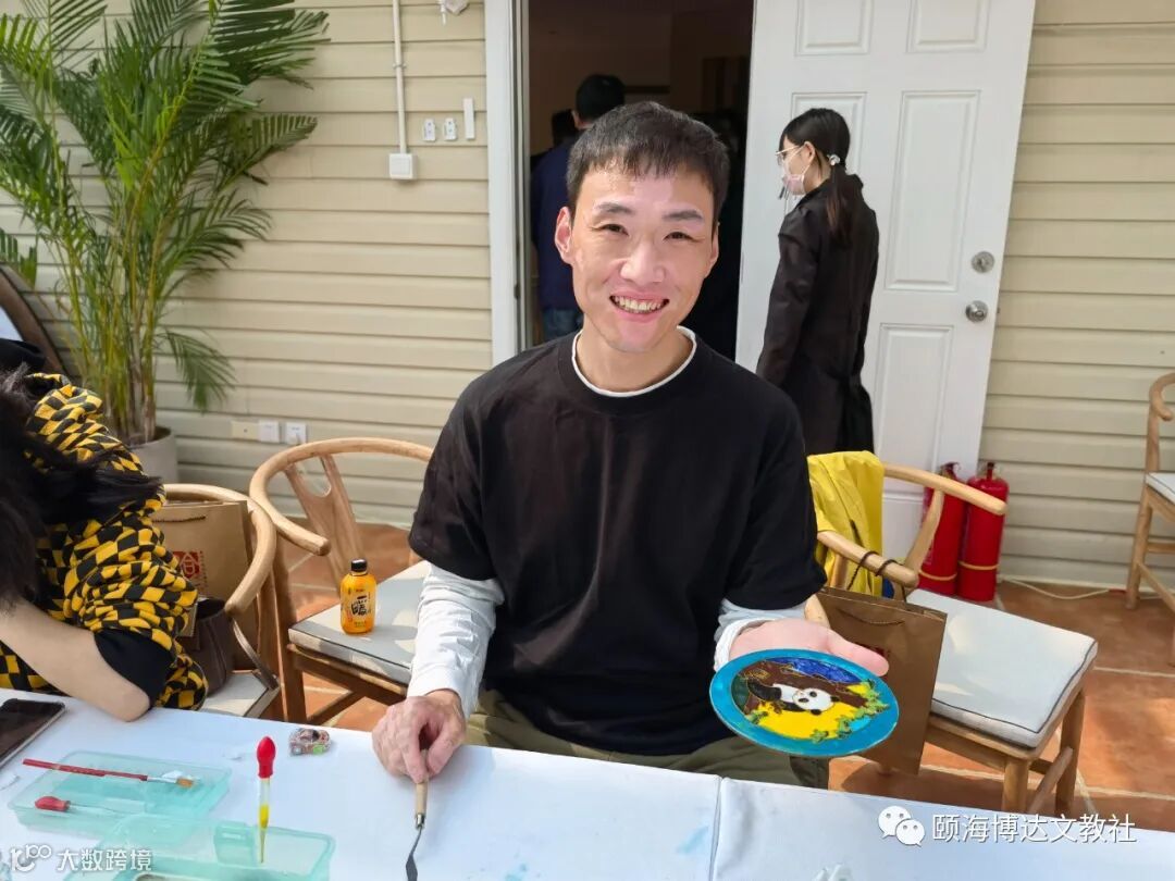 这次大家绘制的图案是我们的国宝——熊猫。完成裁剪、掐丝、绘图、填充颜色等步骤后,一幅幅掐丝珐琅画慢慢地展现在我们眼前。