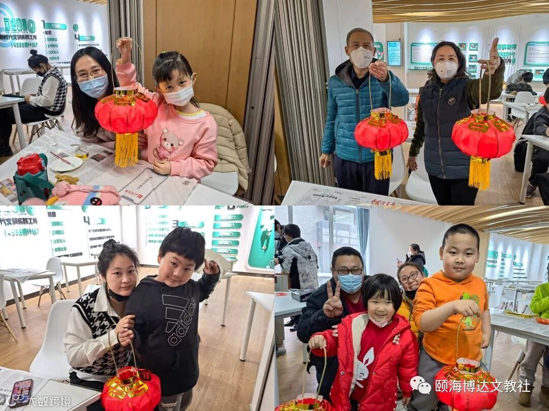 顺利完成了灯笼的制作后,大家纷纷举起自己的作品,脸上洋溢着幸福的笑容。