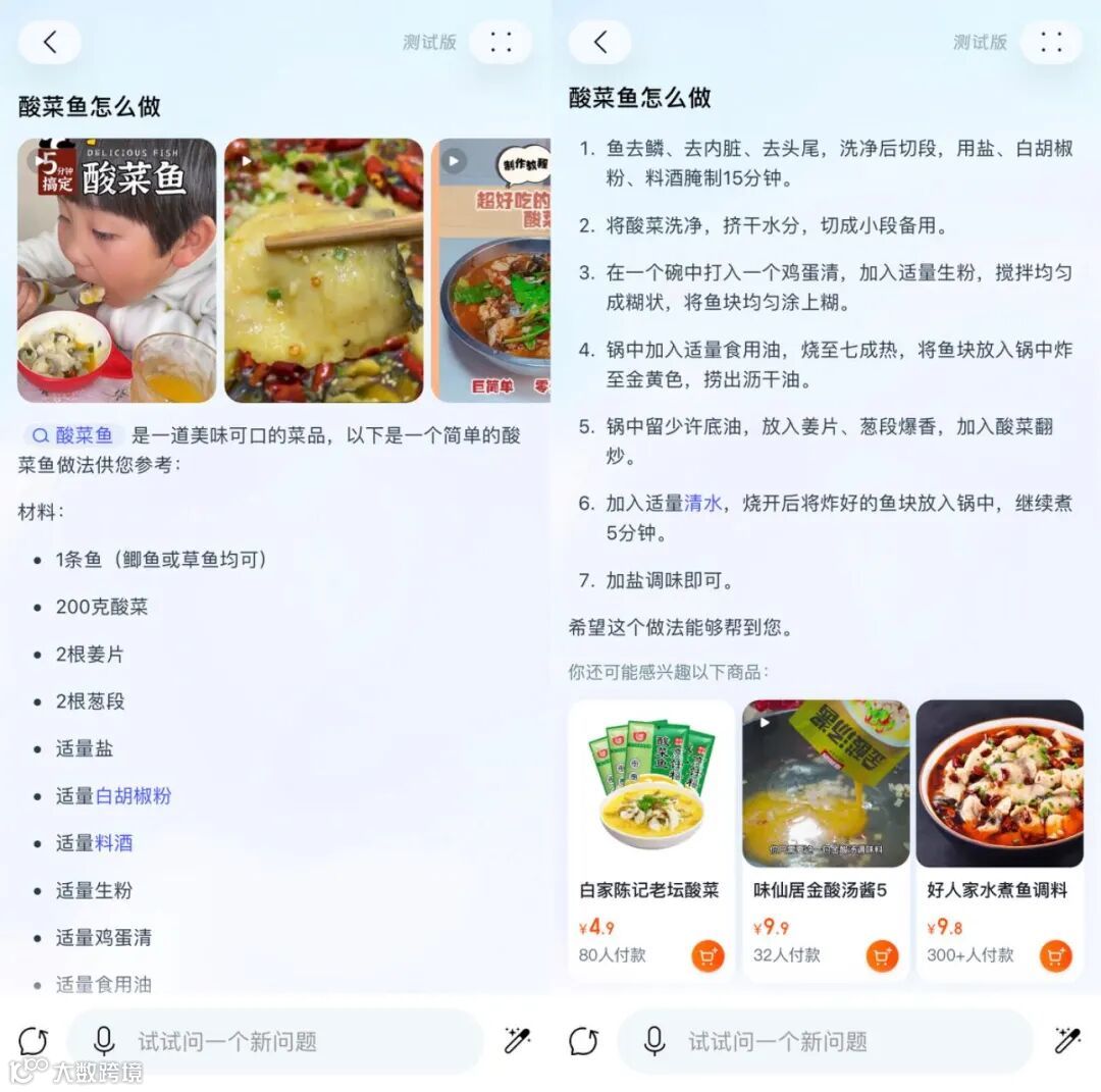 简单地说,就是一个教你做菜的小助手。比如说,EVA喜欢吃酸菜鱼,想尝试自己来做。直接发起提问:酸菜鱼怎么做?