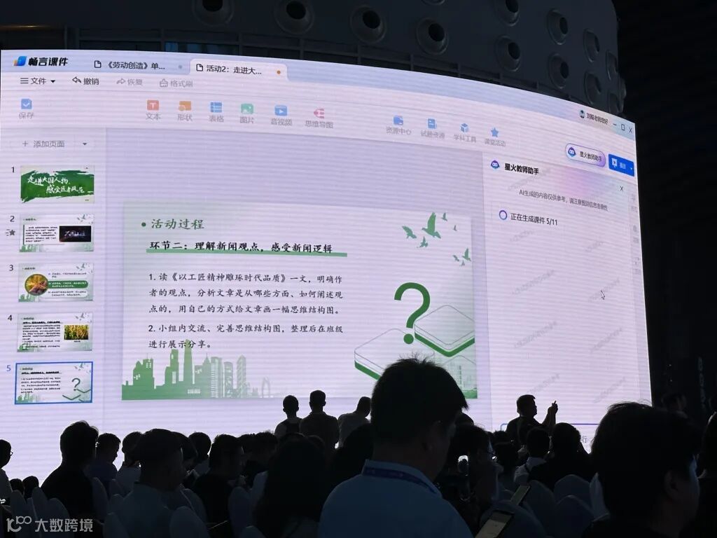 星火教师助手能快速生成相应主题的课堂设计文档,同时,教师还可以在已生成的环节中添加活动。AI助手能基于教学设计、大模型的理解能力,帮助老师一键生成课件,并根据教学内容自动填充相关多媒体内容,还会加入对应的图片、视频、表格。
