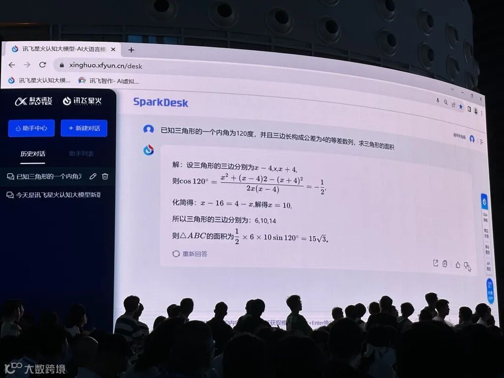 在解决数学能力上也大幅升级,星火能综合运用三角函数、方程、等差数列方面的知识来解决数学问题。