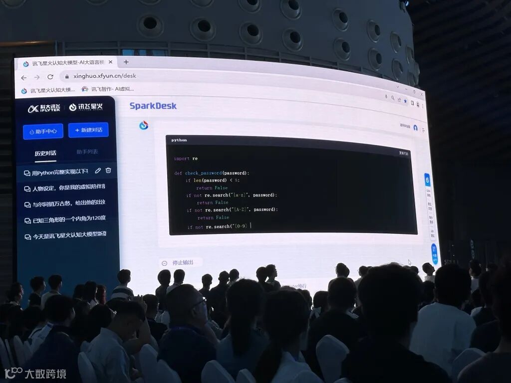 在代码能力展示环节,星火都是现场写代码、现场运行。