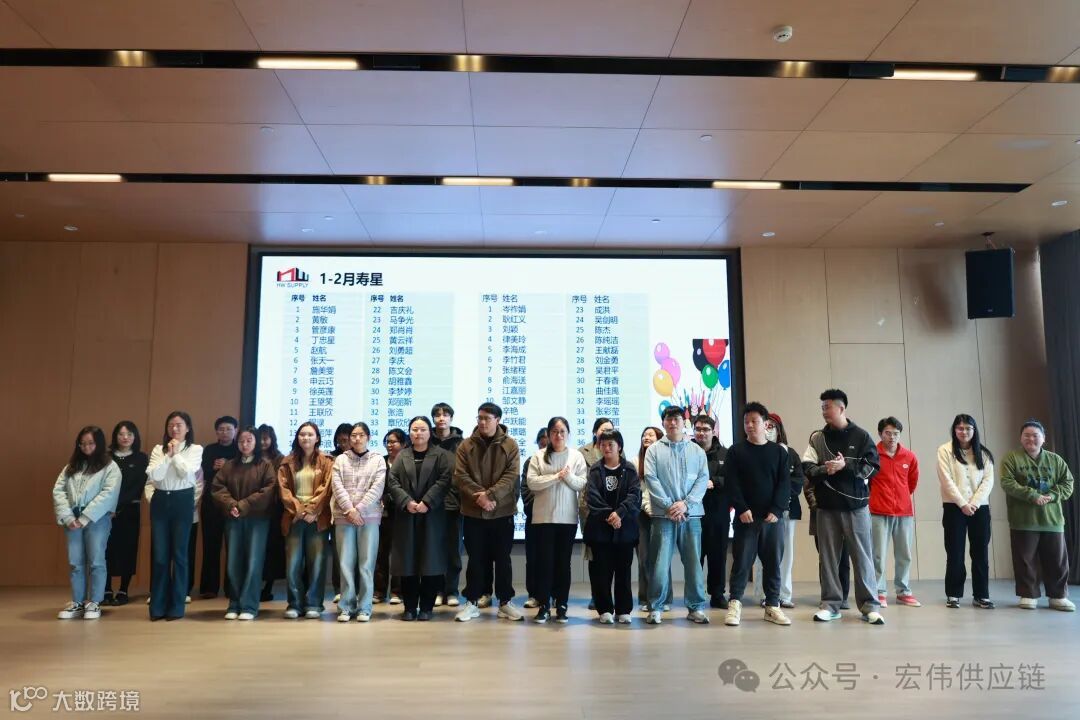 在分享会现场,活力与温情四溢。1-2月份,21位新伙伴带着热忱加入宏伟。他们来自不同岗位,新人介绍环节,新员工畅聊兴趣爱好与职业理想,分享融入宏伟的期待,台下同事认真倾听、掌声不断。公司为当月寿星精心准备生日贺卡与蛋糕券。寿星们上台时惊喜与感动溢于言表,全场共唱生日歌,寿星许愿后大家一同分享喜悦。这不仅是庆生,更彰显了公司的人文关怀,凝聚了员工向心力。