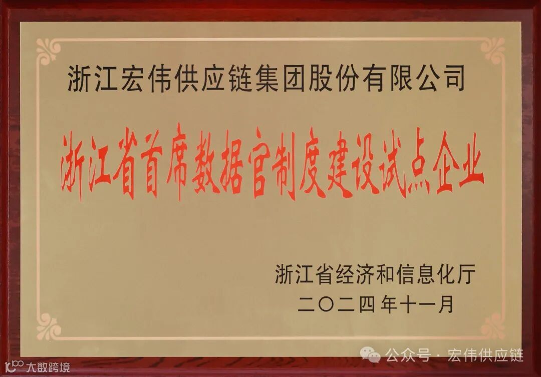 向企业家致敬,为纳税人喝彩!宏伟供应链荣膺“2024年度永康市纳税双百企业”称号,并成功入选“浙江省首席数据官制度建设试点企业”。这不仅是对宏伟供应链过去一年努力的高度认可,更是对其在数字化转型领域积极探索的有力肯定。宏伟供应链董事长吕宏伟、常务副总经理朱振扬分别上台,庄重地接过这代表着集团荣誉的奖项,这一时刻,不仅是个人的荣耀,更是整个宏伟供应链团队奋斗的结晶。
