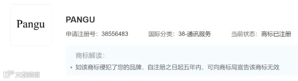 来自天眼查的信息,华为已于近期申请注册两个“HUAWEINETGPT”(华为网络GPT)商标。此外,华为已成功抢注多个带有“盘古”“PANGU”字样的商标。