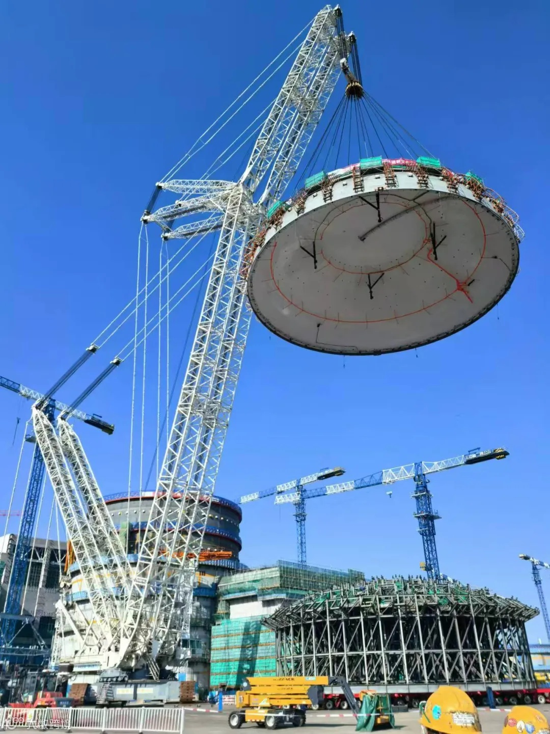 记者从国家电投集团获悉,9月7日,国家电投海阳核电3号机组核岛钢制安全壳顶封头模块顺利吊装就位。至此,3号核岛反应堆厂房顺利实现封顶,主体结构基本形成,标志着机组全面进入设备安装阶段。