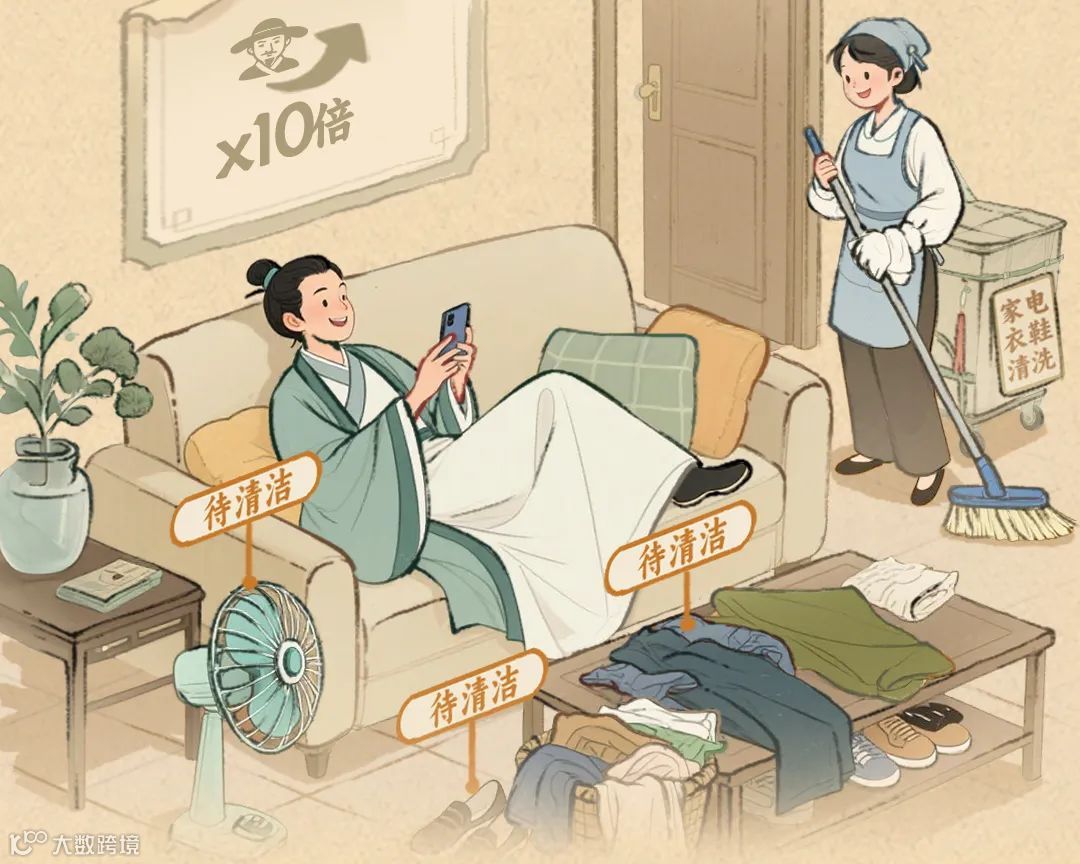 家务外包,把琐事交给专业,把时间留给自己,上半年使用衣鞋清洗和家电清洗的人数同比增长10倍+。