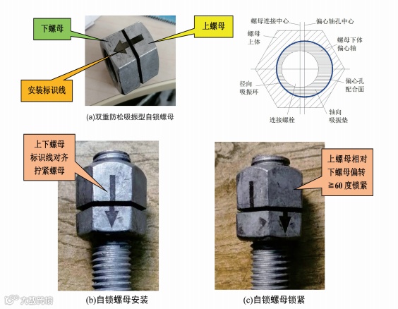 锁紧上螺母,用扳手夹住上螺母,顺时针拧紧上螺母,使上螺母相对下螺母进一步转动60度以上。(注意:如转动上螺母60度后,感觉锁紧扭矩偏小,须进一步拧紧上螺母达到有效锁紧。 )