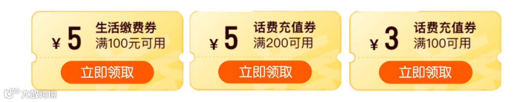 2~5元生活缴费、话费充值券等福利