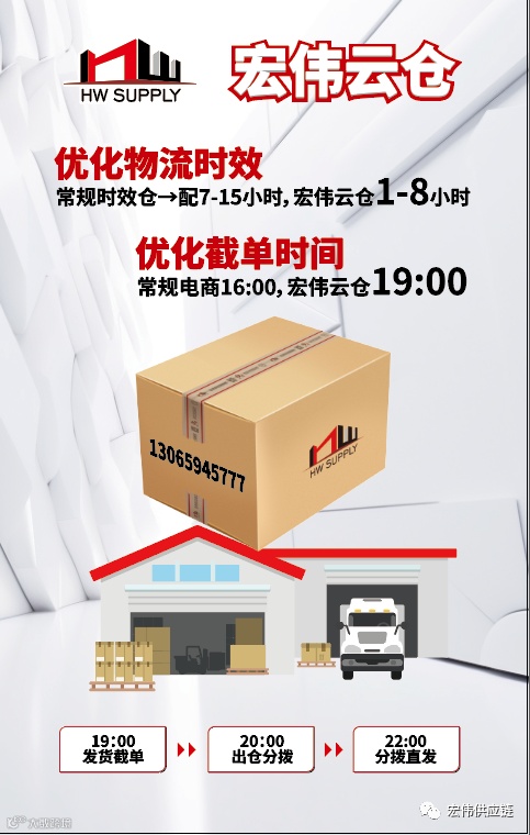 宏伟云仓为客户提供仓、转、运、配一站式仓储物流服务,0元入仓,1件代发。云仓内各客户共享库容,实时调峰,既解决了自建仓储淡季资源浪费的问题,又解决了旺季库容与人员需求无法及时满足的问题;配备定向开发的专业WMS系统,从入库上架,到出库,再到LA轨迹,实现全物流环节线上追踪;定期的库存盘点,为货物的安全负责;实时动态的库存反馈,为前端的采购销售策略反向赋能。