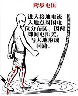 即人体进入接地电流地点周围电位分布区,因两脚间电压差,与大地形成回路,发生触电事故。