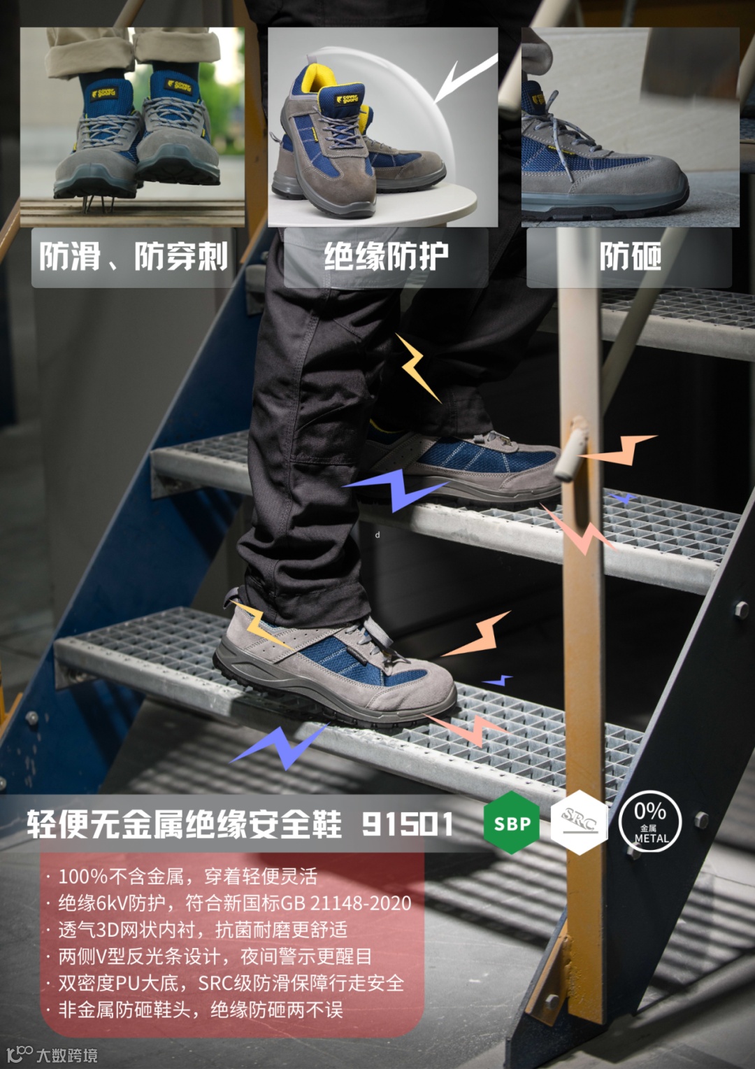 除了主打的91501轻便无金属多功能安全鞋这款明星产品外,防砸防穿刺安全鞋是作业现场最常见的安全防护装备之一。