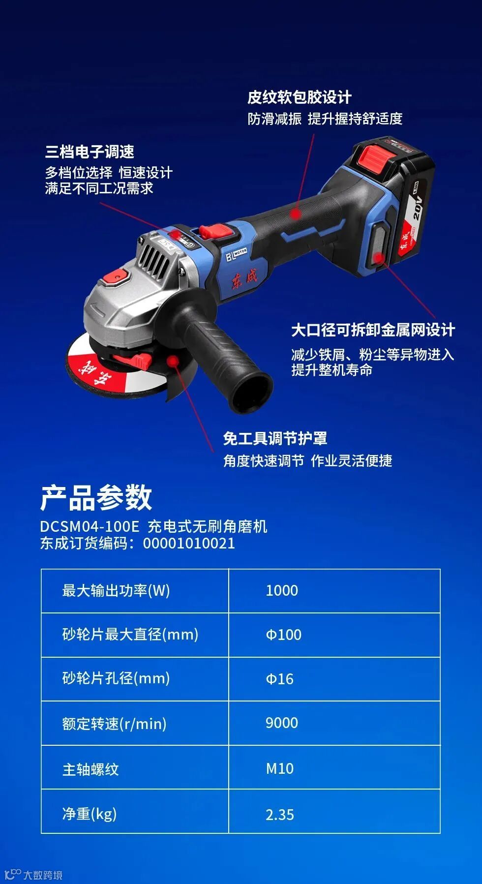 就比如说,天马君为大家带来的这款DCSM04-100E充电式无刷角磨机,三重保护功能升级,让工作安全无忧!