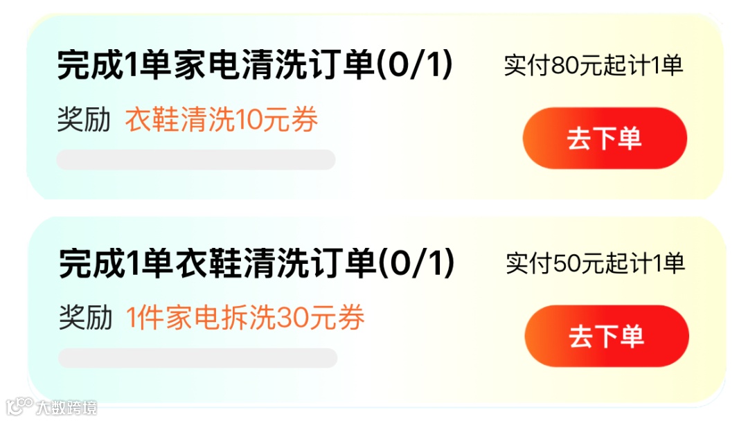 成功完成家电/衣鞋清洗订单,立享专属奖励