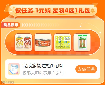 大牌宠粮低至3折起,还能赢礼包1元购