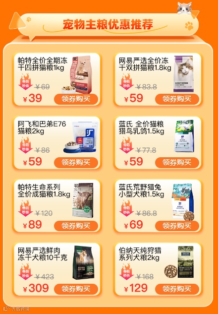 宠粮、宠物生活一站式配齐,优惠满满~
