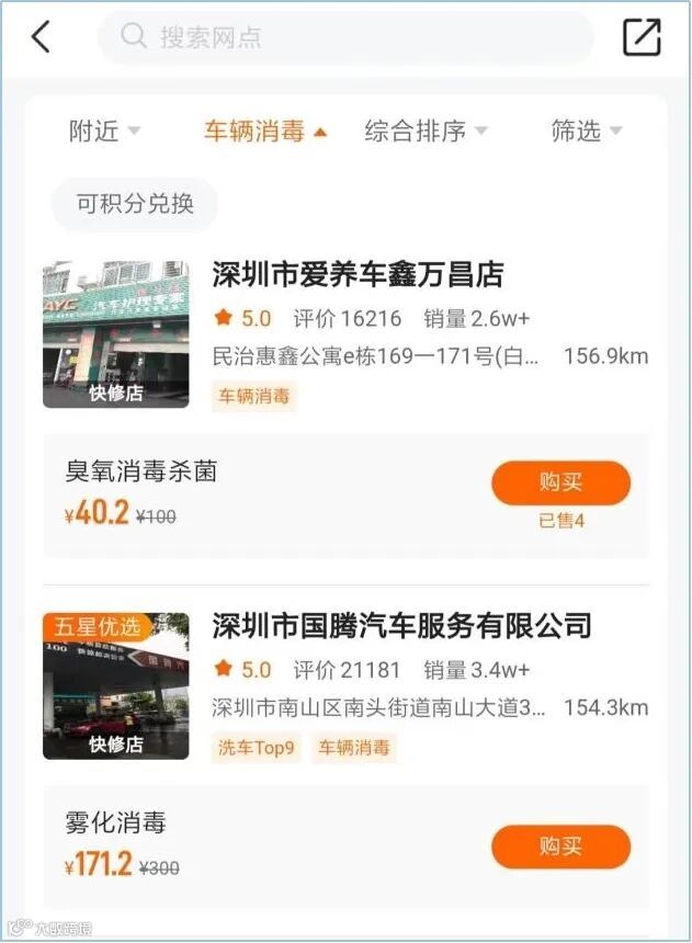 不知如何挑选门店的车友,可直接在平安好车主APP搜索“汽车消毒”服务,附近专业消毒门店一键掌握,喷洒消毒、蒸汽消毒、空调消毒、臭氧消毒、光触媒消毒5大消毒模式任您选择。不仅如此,线上下单还可享优惠呢!