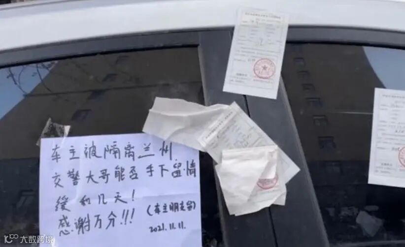而当交警看到“求情条”之后,一直到车主将车钥匙寄回将车挪走,都没有再继续贴罚单。