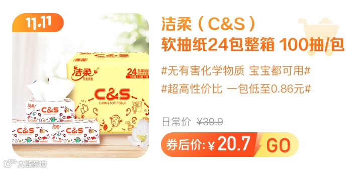 洁柔(C&S) 100%原生木浆软抽纸24包整箱
