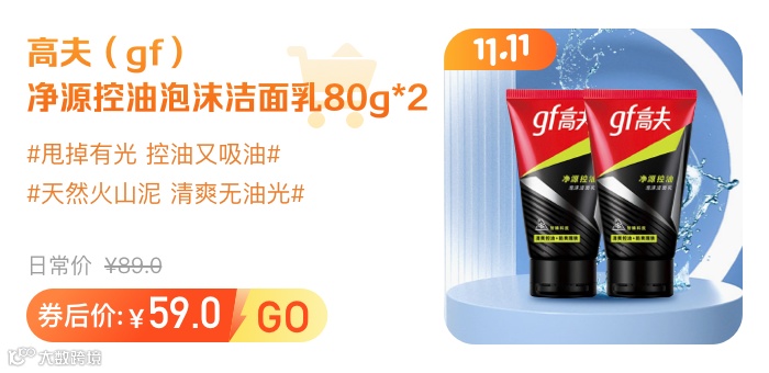 高夫(gf) 净源控油泡沫洁面乳80g*2