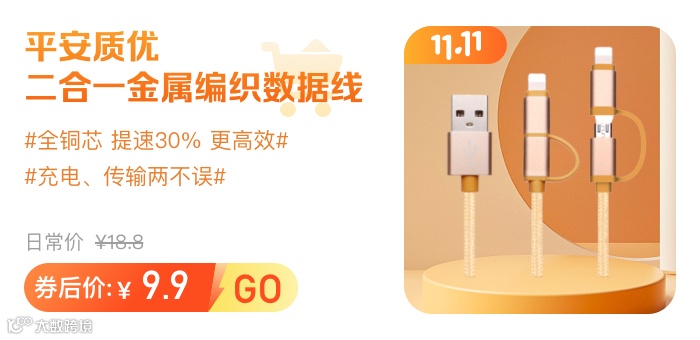 平安质优 二合一金属编织数据线
