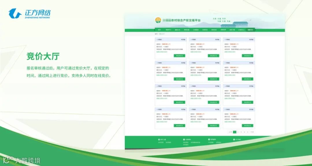 7、竞价大厅:报名审核通过后,用户可通过竞价大厅,在规定的时间,通过网上进行竞价,支持多人同时在线竞价。
