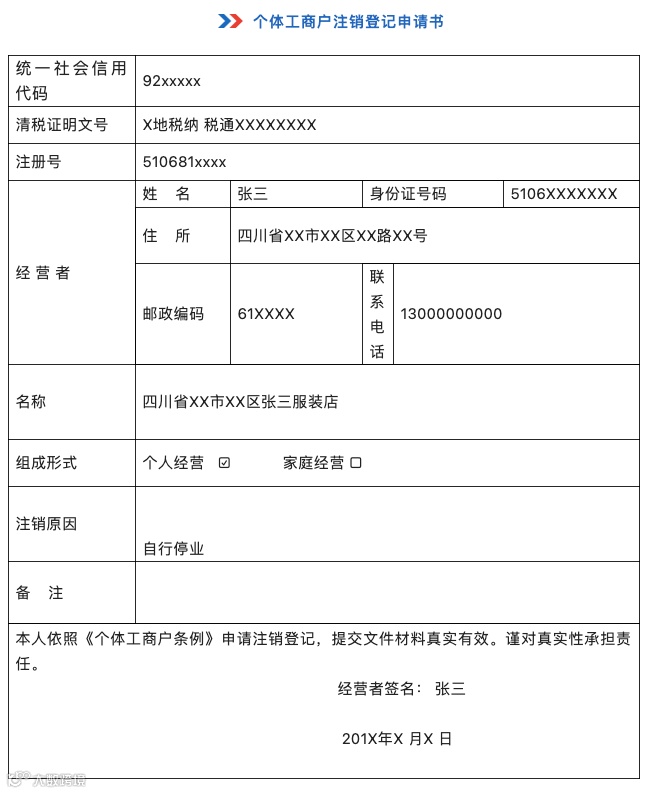 1. 准备《个体工商户简易注销登记申请表》,若为家庭经营的,则全体人员均在签字确认。