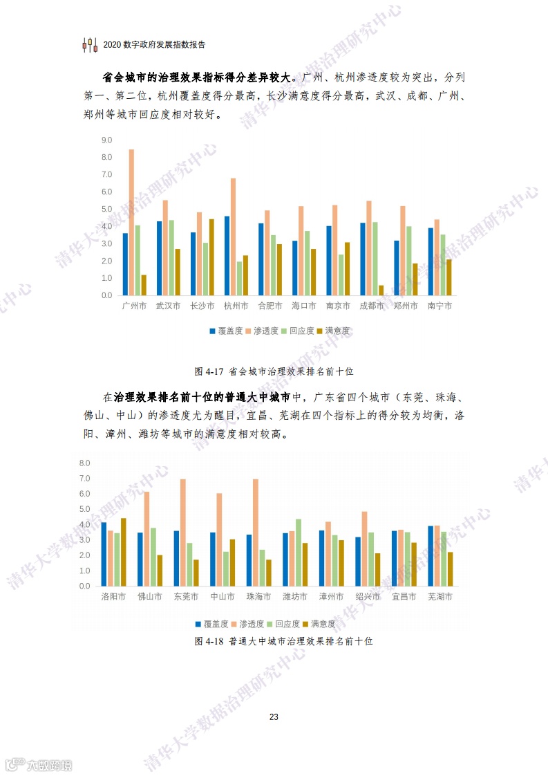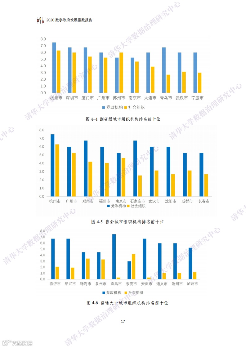 研究发现,无论在省级还是地级市层面,组织机构及治理效果得分都与人均GDP有正向相关关系,制度体系得分与互联网渗透率,即互联网宽带接入户数呈现正相关关系,治理能力得分与地方财政收入有正相关关系。