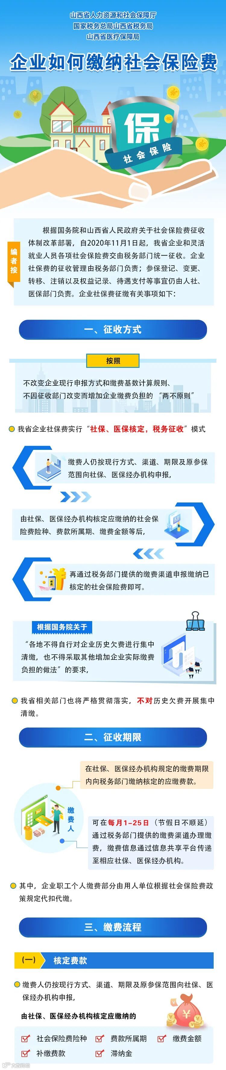 一图了解企业如何缴纳社会保险费 山西慧算账