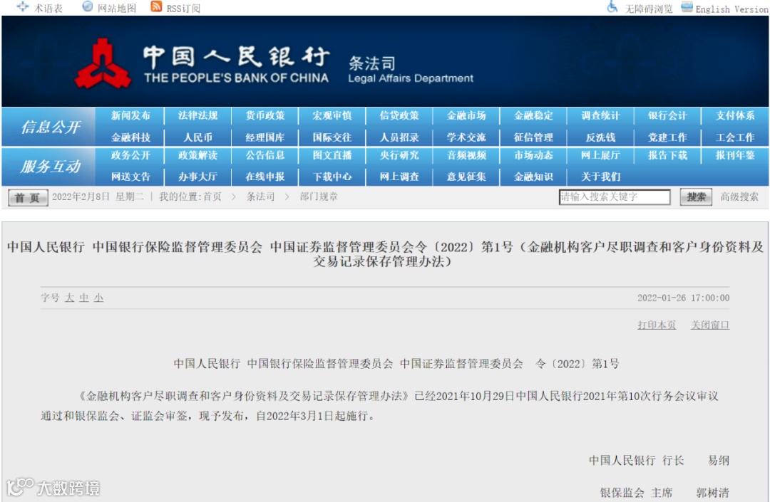 在2021年1月末,央行、银保监会、证监会等三部门联合发布《金融机构客户尽职调查和客户身份资料及交易记录保存管理办法》:个人到银行存取现金超过5万元,需要核实身份,登记资金来源和用途。
