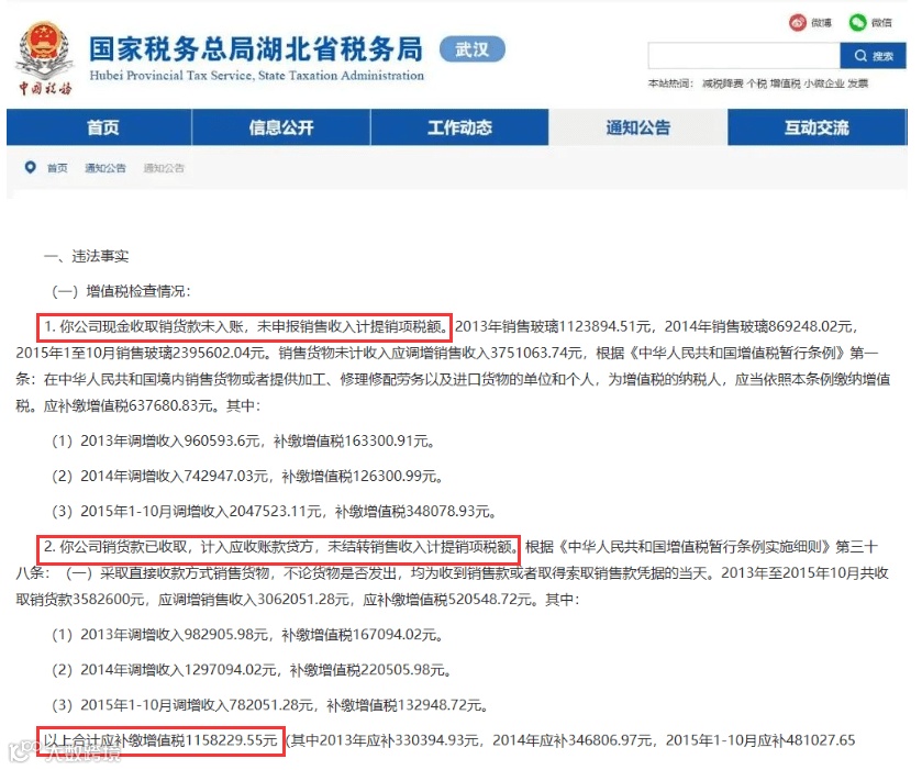近日,武汉市税务局在稽查过程中发现武汉某公司存在:收取销货款未入账,未申报销售收入计提销项税额的情况,最终应补缴增值税1158229.55元!
