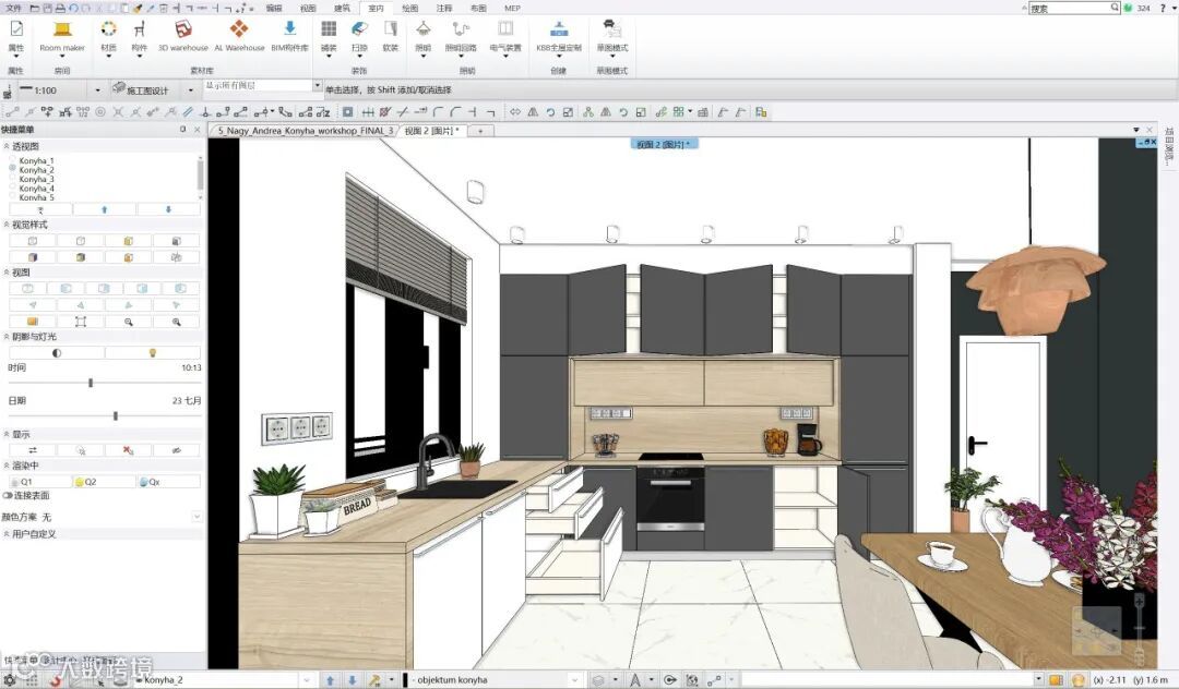 8、开放式构件生态无缝接入SketchUp线上线下模型库,支持自定义构件永久复用,材质直接拖放套用,所见即所得。