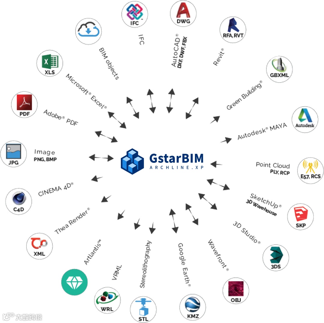 GstarBIM深度兼容Revit/SketchUp/CAD等50+格式,基于IFC标准实现无损传输,集成buildingSMART bSDD数据服务,便于设计项目的数据交互与协同。