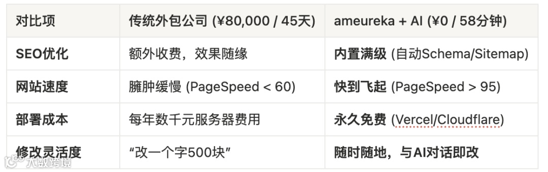 那个报价8万的公司,他们雇佣的“高级开发”可能还在焦头烂额地调CSS,而AI已经帮你把全球部署都搞定了。