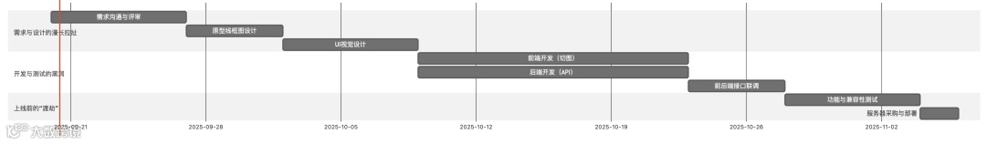 来,我们看看那些“专业团队”是怎么骗钱的。他们会给你一张甘特图,看起来密密麻麻,专业得不行。