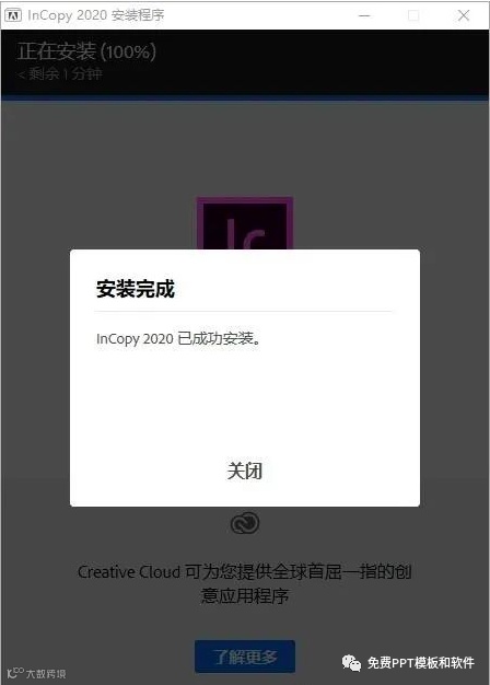4、InCopy 2020 安装完成,点击【关闭】。即可开始使用。