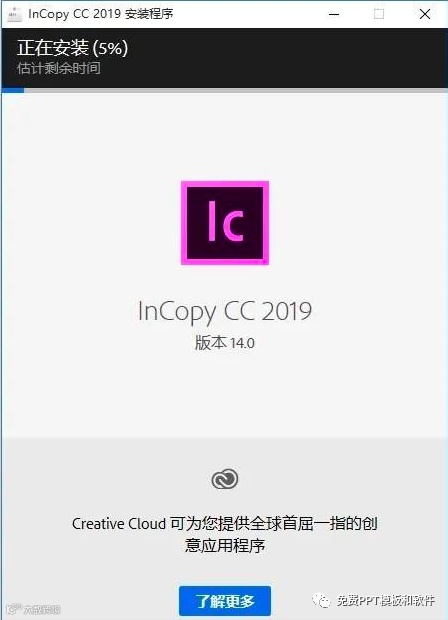 3、InCopy 2019 正在安装中,请等待完成即可。