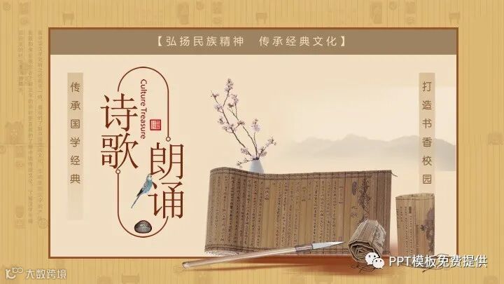 喽小伙伴们,今天更新的是一套古典风诗歌朗诵PPT模板,共16页。