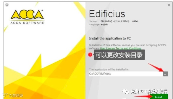 ①点击【...】可以更改软件的安装目录。默认安装路径:C:\ACCA\Edificius