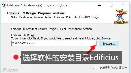 7、点击【Browse...】更改补丁的安装目录,安装位置为第3步 Edificius 3D 的安装位置。默认安装的位置:C:\ACCA\Edificius ,再点击【Next】。
