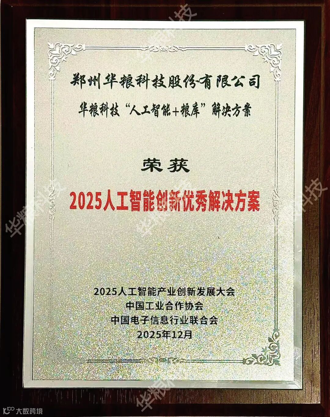 12月17日,由中国工业合作协会主办的2025人工智能产业创新发展大会在北京成功举行。大会以“AI赋能·共创未来”为主题,汇聚政府机构、行业协会及企事业单位代表,共同探讨人工智能赋能实体经济核心议题,推动技术创新与产业融合。会上正式发布了2025人工智能创新优秀解决方案名单,华粮科技“人工智能+粮库”解决方案凭借卓越的技术创新性、扎实的场景实用性与突出的行业引领价值,成功入选。