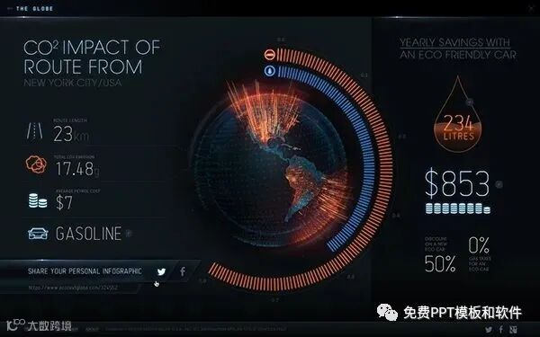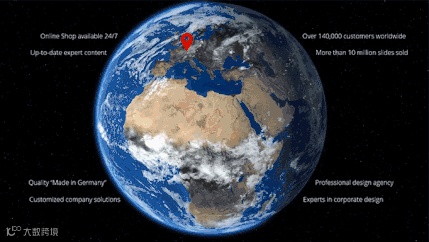 在宽屏页面上,使用地球素材的标注地点,会让页面沉浸感更强: