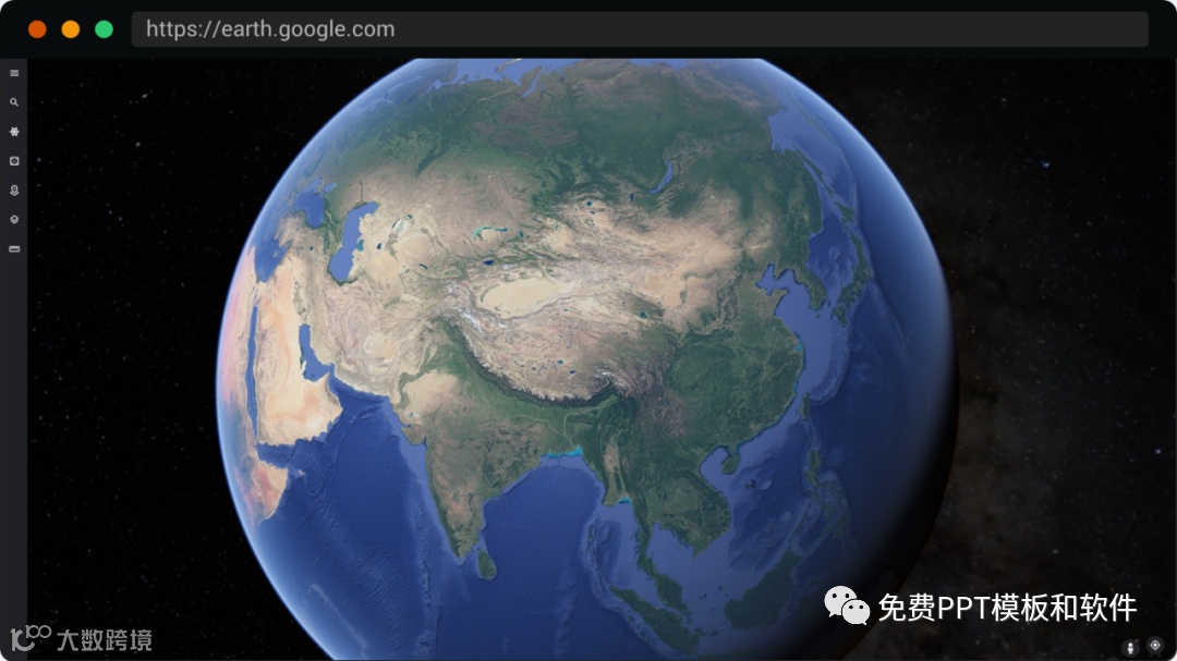 像上面这张地球卫星图的做法也很简单,我们只需要打开谷歌地球网站,将地球拖动到合适角度,然后截屏就可以了。