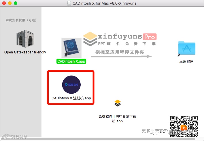 2、把【CADintosh X】拖入右边【应用程序】拷贝安装。